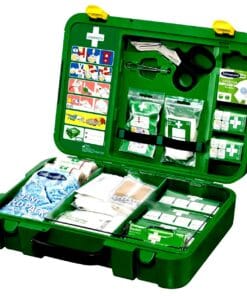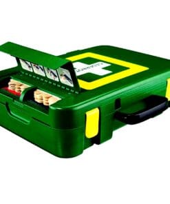 Apteczka pierwszej pomocy DIN 13157 z dozownikiem plastrów Cederroth to przenośna apteczka pierwszej pomocy, wykonana z wytrzymałego materiału o matowej powierzchni, która skutecznie zabezpiecza jej zawartość przed kurzem, wilgocią i brudem.