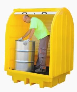 Pokrywa palety służy do bezpiecznego przechowywania płynów, zarówno w wnętrzach, jak i na zewnątrz. Chroni przechowywane ciecze przed niekorzystnymi warunkami atmosferycznymi, co jest kluczowe dla zachowania ich właściwości. Dodatkowo, pokrywa ta umożliwia oddzielanie niebezpiecznych płynów od innych substancji, co jest istotne w kontekście minimalizowania skutków incydentów środowiskowych. Warto zaznaczyć, że do używania zestawów awaryjnych, w tym pokryw, wymagane jest krótkie szkolenie instruktażowe lub zapoznanie się z instrukcją użytkowania. |