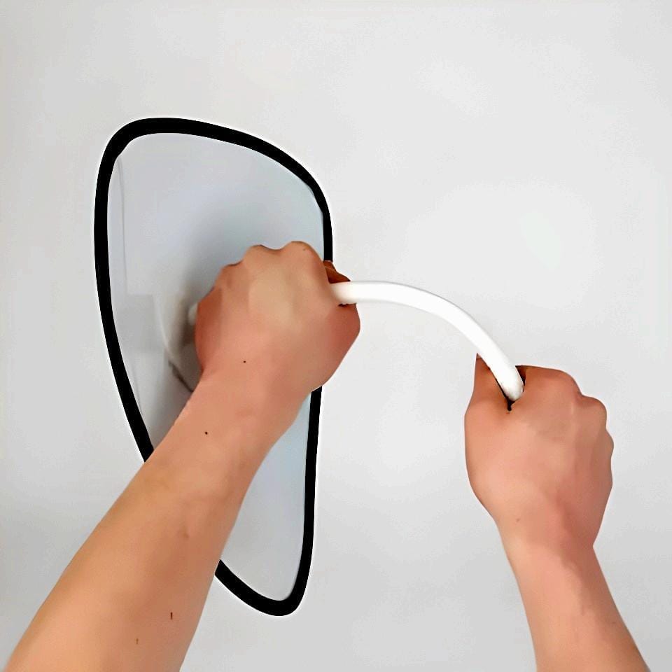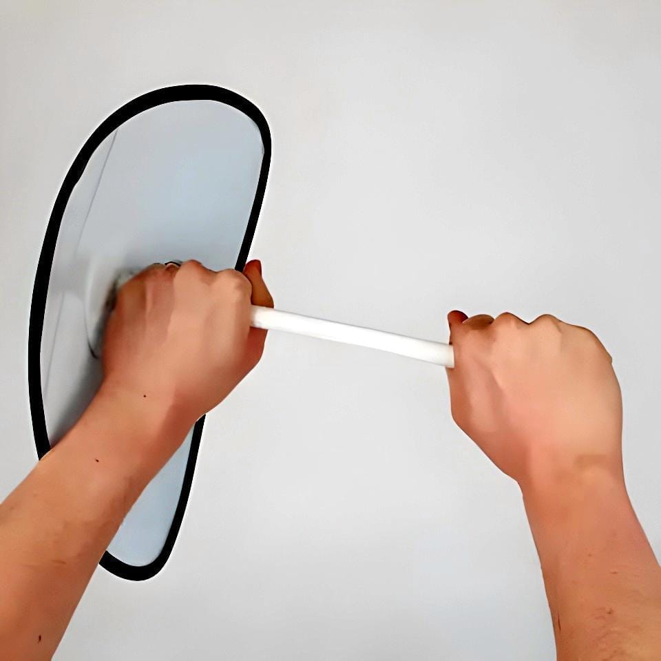 Lustro dostarczane jest wraz z uniwersalnym teleskopowym uchwytem ściennym. Elastyczny drążek pozwala na łatwą regulację pożądanego kąta odbicia. |