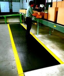 Mata posiada żółte paski na krawędziach, które znacznie zwiększają bezpieczeństwo w miejscu pracy. Zgodny z OSHA 1910-144. |
