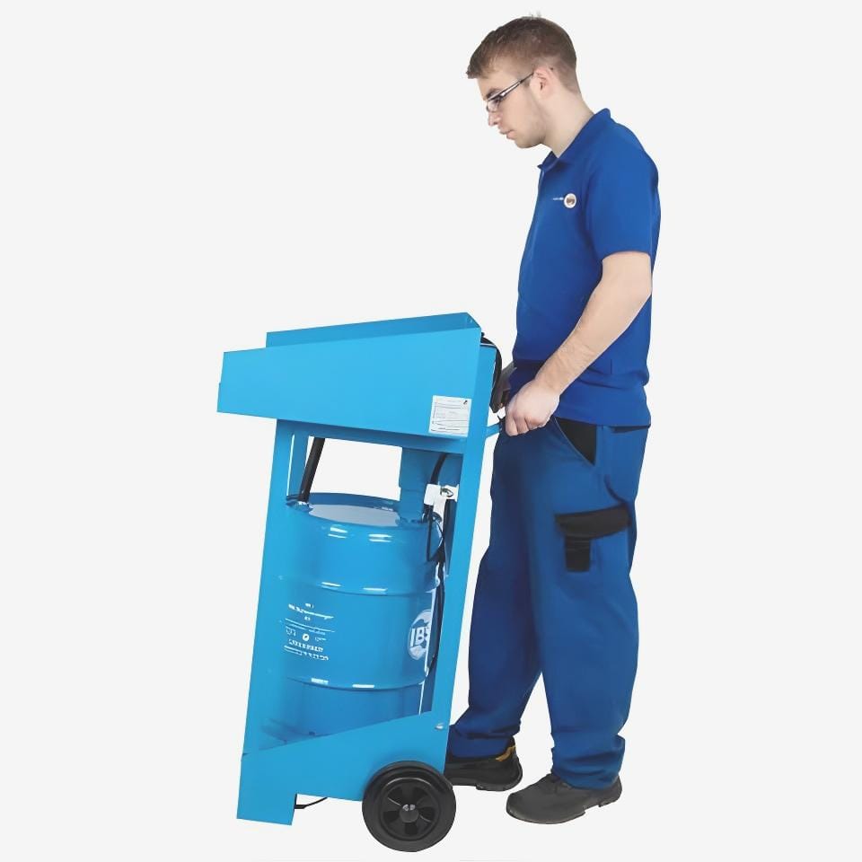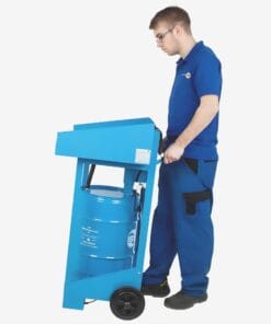 Stół myjący wykonany jest z solidnej stalowej konstrukcji, a jego powierzchnia pokryta jest metaliczną farbą, co zapewnia ochronę przed korozją. Posiada wystarczająco duży obszar roboczy oraz jest wyposażony w wąż i pompę do transportu płynu czyszczącego do karty myjącej. Płyn czyszczący znajduje się w bębnie wymiany, umieszczonym pod stołem myjącym (płyn czyszczący oraz bęben nie są częścią standardowej dostawy). Stół można przesuwać za pomocą dwóch kółek. Dodatkowo, istnieje możliwość wyposażenia stołu w wanienkę do wyłapywania kropelek. |