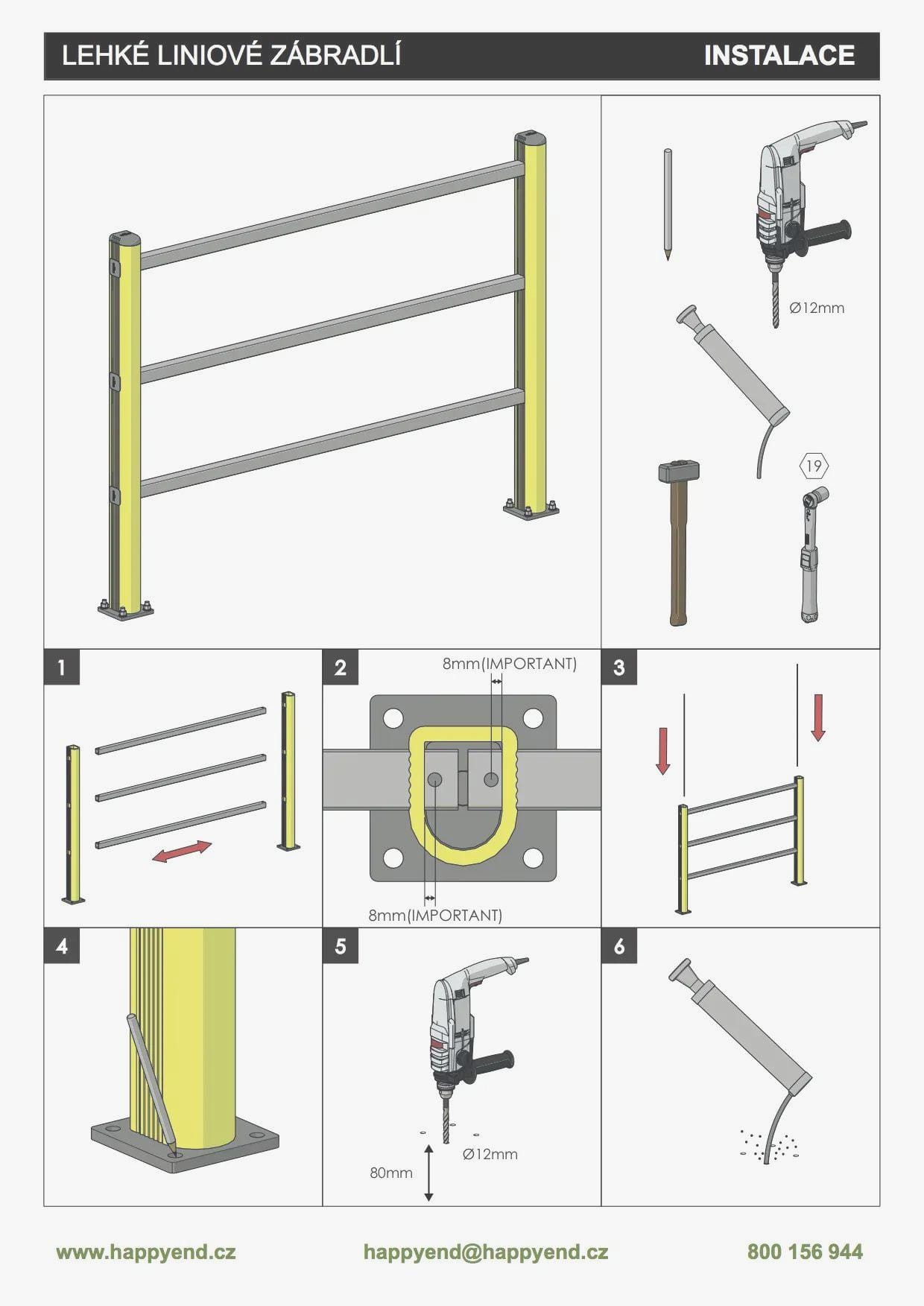 Bariera składa się z giętkich poprzeczek i słupków, które są mocowane do podłogi za pomocą stalowych nóżek i kotew. Stopki mają powierzchnię malowaną proszkowo, a kotwy wykonane są ze stali ocynkowanej. Bariera wykonana jest z materiału wysoce odpornego chemicznie i mechanicznie oraz samogasnącego. Charakterystyczny żółty kolor zwiększa widoczność i bezpieczeństwo pracy. Materiał montażowy jest zawarty w dostawie. |