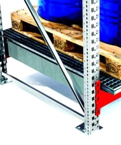 Dodatkowy ruszt ocynkowany służy do zwiększenia ilości poziomów składowania w systemach regałowych. Dzięki zastosowaniu rusztu, pojemniki można przechowywać bez użycia palet, co pozwala na oszczędność miejsca. Kratka mocowana jest do stelaża za pomocą specjalnych wsporników, które są dostarczane w stanie zdemontowanym. Taki sposób montażu eliminuje ryzyko przesuwania rusztu podczas manipulacji towarem, co zwiększa bezpieczeństwo pracy.