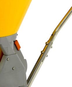 Zasobnik wyposażony jest w plastikowe kółka z gumową warstwą, co ułatwia jego transport i manewrowanie. Talerz rozsypujący został zaprojektowany tak, aby zapewnić równomierne rozsypanie materiału na szerokości od 1 do 4 metrów, co czyni go idealnym rozwiązaniem do różnych zastosowań. Maksymalna wielkość ziaren, które można stosować, wynosi od 5 do 6 mm, co pozwala na użycie różnych rodzajów materiałów.