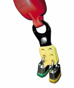 Klamra LOCKOUT jest wkładana do otworu blokującego urządzenia, a klamra jest wyposażona w zamek. Klamry nie można wtedy otworzyć, a zablokowanego urządzenia nie można otworzyć ani nim manipulować. Zapięciem LOTO można zamknąć różne rodzaje urządzeń elektrycznych. |