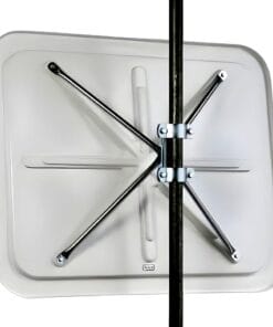 Lustro jest zapakowane w pojemnik z czteroramiennym przegubowym uchwytem, który można zamontować na ścianie lub rurze o średnicy od 50 do 85 mm. To mocne mocowanie jest odporne na wiatr do stopnia 12 (117 km/h), co zapewnia stabilność i bezpieczeństwo użytkowania.